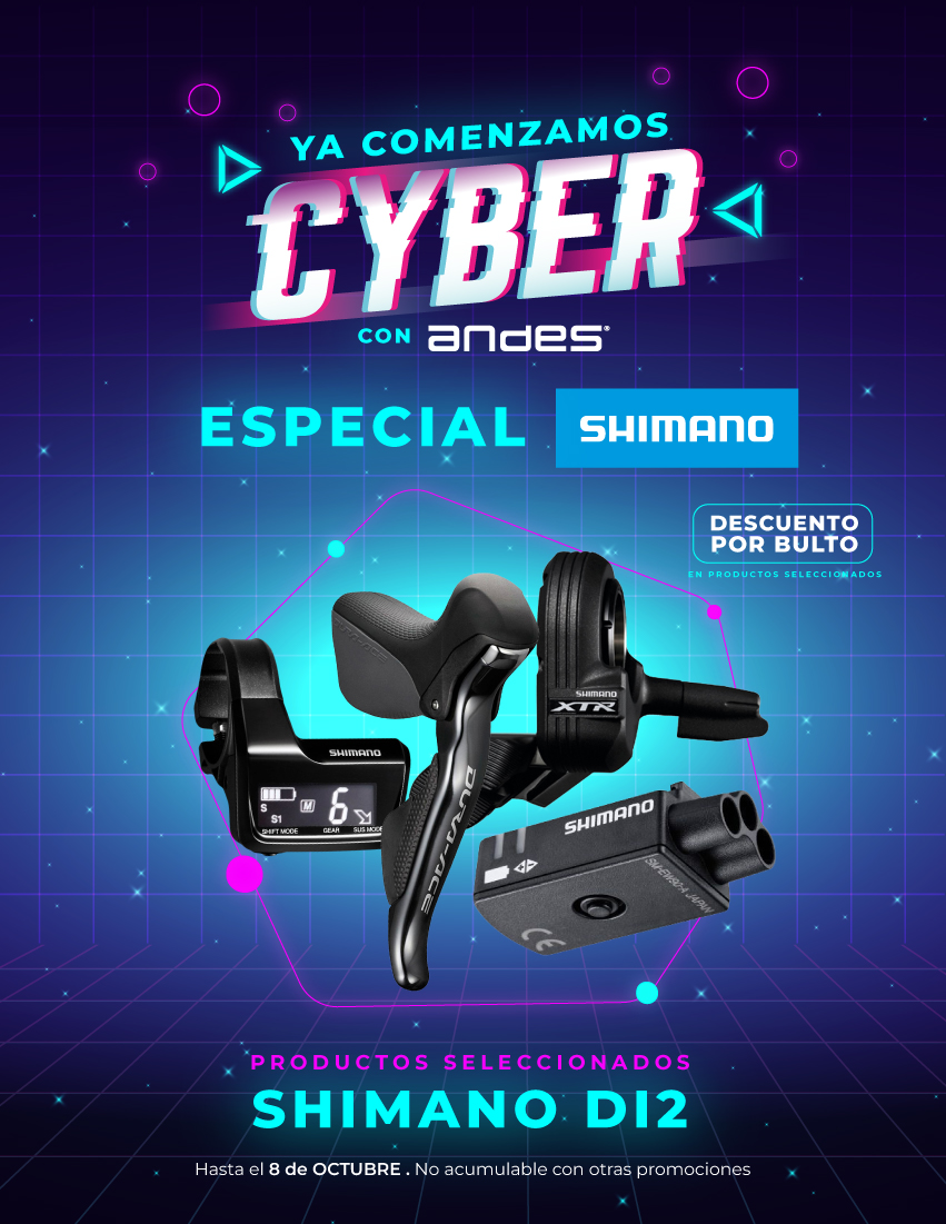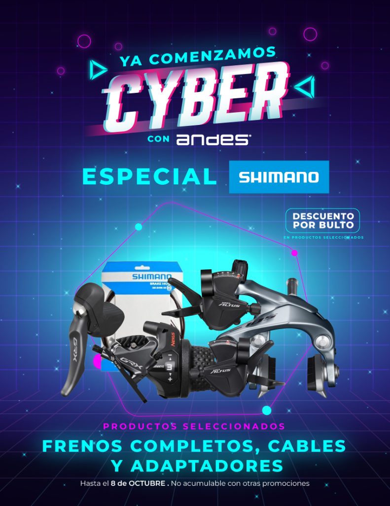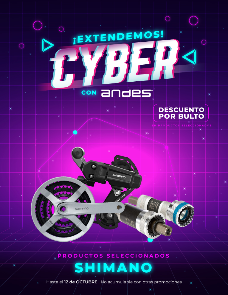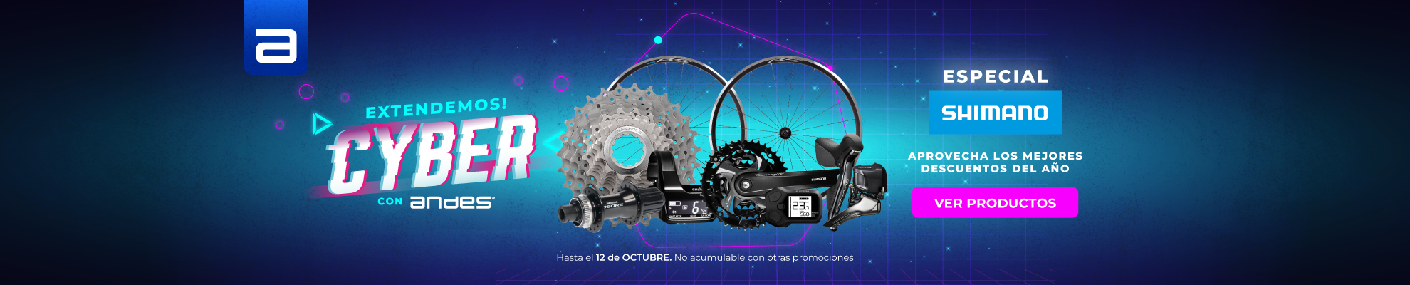 EXTENDEMOS: CYBER SHIMANO Shimano Di2 Shimano Herramientas y Otros Shimano Volantes Shimano Transmisión Shimano Mazas, Rayos y Ruedas Shimano E-BIKES Frenos, Cables y Adaptadores Shimano EXTENDEMOS: VARIAS MARCAS T-ONE Seleccionados Shimano Prepara tu CYBER Continental Prepara tu CYBER Rodillos Prepara tu CYBER Tubos ZOOM Prepara tu CYBER Caramagiolas Prepara tu CYBER RALCO Prepara tu CYBER Horquillas ZOOM Prepara tu CYBER Gomas DURO Prepara tu CYBER Portabicicletas Prepara tu CYBER Cascos BEST Prepara tu CYBER Conoce nuestro OUTLET