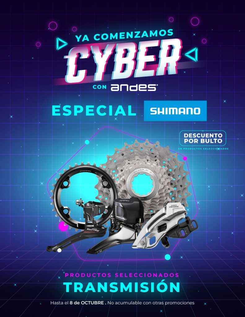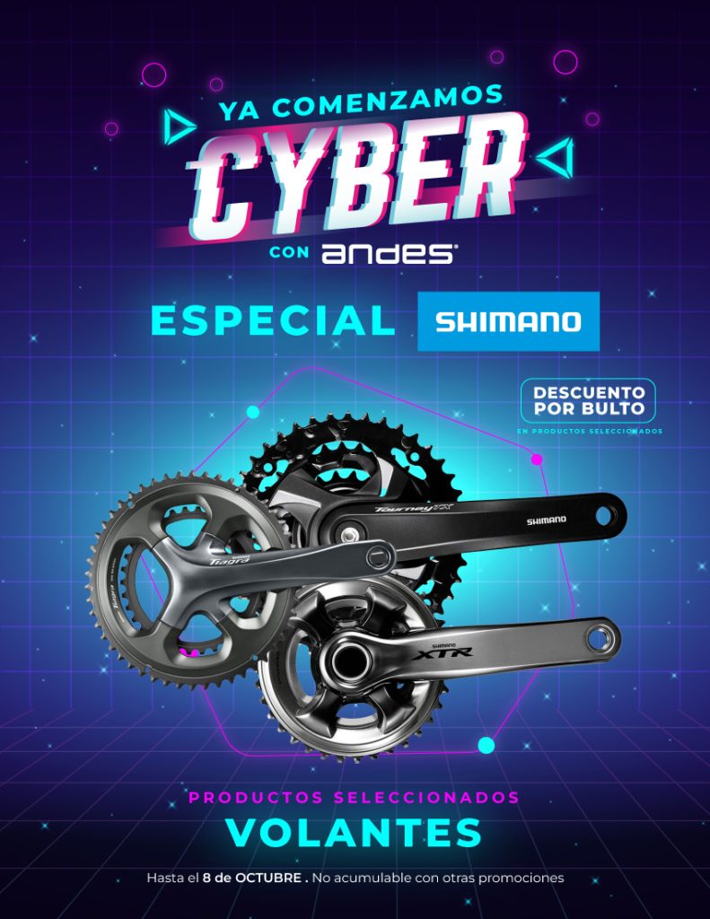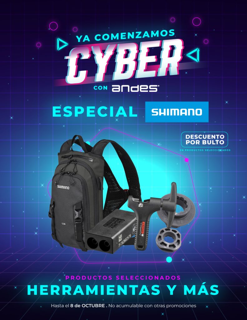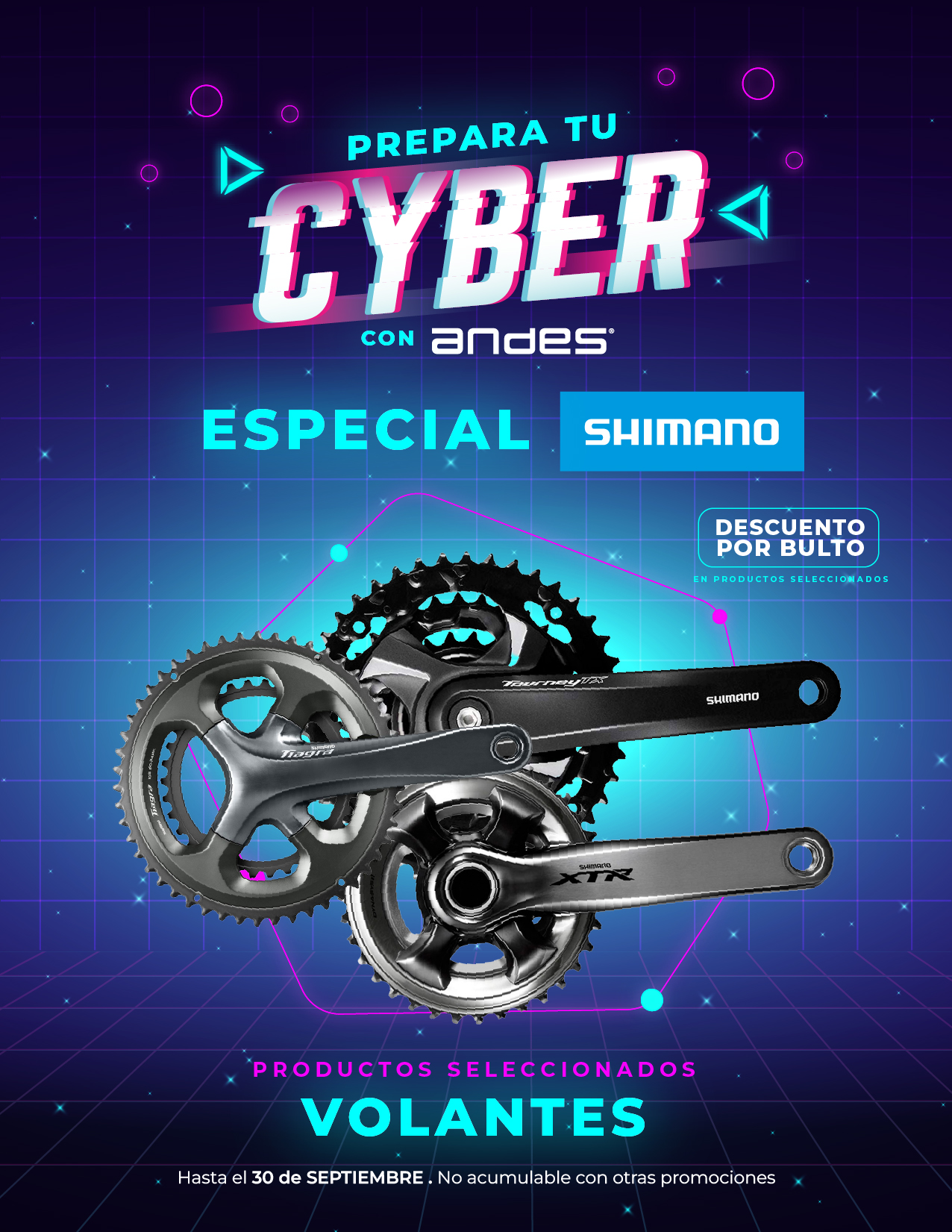 EXTENDEMOS: CYBER SHIMANO Shimano Di2 Shimano Herramientas y Otros Shimano Volantes Shimano Transmisión Shimano Mazas, Rayos y Ruedas Shimano E-BIKES Frenos, Cables y Adaptadores Shimano EXTENDEMOS: VARIAS MARCAS T-ONE Seleccionados Shimano Prepara tu CYBER Continental Prepara tu CYBER Rodillos Prepara tu CYBER Tubos ZOOM Prepara tu CYBER Caramagiolas Prepara tu CYBER RALCO Prepara tu CYBER Horquillas ZOOM Prepara tu CYBER Gomas DURO Prepara tu CYBER Portabicicletas Prepara tu CYBER Cascos BEST Prepara tu CYBER Conoce nuestro OUTLET